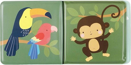 Badboekje Jungle friends is het ideale badspeelgoed. Dit badboekje met schattige prints en vrolijke kleuren heeft een fijn formaat voor kleine kinderhandjes en is gemaakt van zacht materiaal. Het badboekje is waterdicht, gemaakt van EVA materiaal en daarom speciaal geschikt voor waterpret.