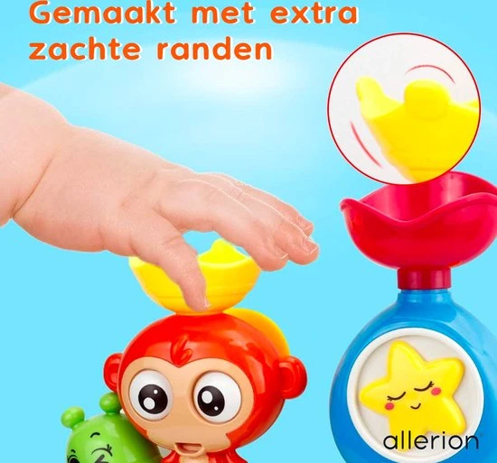 Super leuke vernieuwende badspeelgoed set! Met draaiende onderdelen, vrolijke dieren thema en voor in bad of onder de douche. Zet het speelgoed in elkaar, schep water aan de bovenkant er in, en alle onderdelen beginnen te bewegen! Met maar liefst twee verschillende water-routes! Badderen was nog nooit zo leuk. Voor kinderen vanaf 1 jaar!