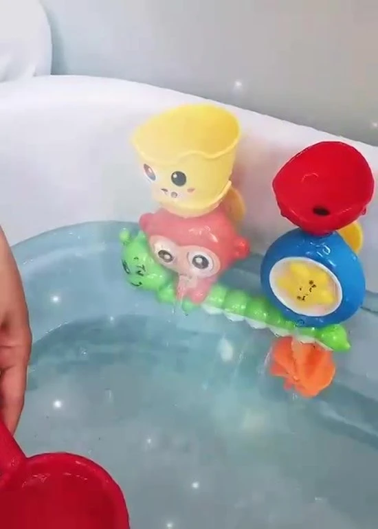 Vinden jou kinderen het niet leuk om onder de douche of in bad te gaan? Met deze bewegende badspeelgoed set is dat probleem verleden tijd! Kijk maar eens wat er allemaal gebeurt als je bovenin water giet. Sterretjes gaan bewegen, het molentje gaat draaien, en er spuit overal water uit. Plezier gegarandeerd.