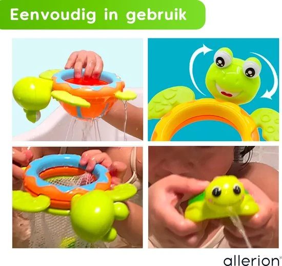 Jonge kinderen hebben altijd interesse in felgekleurd (bad)speelgoed. Met deze speelset wordt fijne motoriek en hand-oog-coördinatie. De vrolijke diertjes zorgen voor extra motivatie om de taken te volbrengen; het vissen van kleine schildpadjes en sprayen van water. Natuurlijk moeten papa en mama het wel eerst even voordoen.