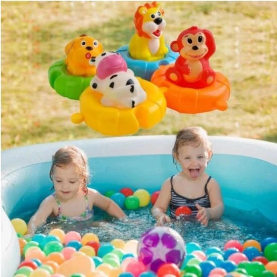 Met ons badspeelgoed kunnen dagelijkse baden worden veranderd in een interessant spektakel. De kinderen ontwikkelen een grote verbeeldingskracht en kunnen verschillende onderwerpen alleen of als stel nabootsen. Bovendien bevordert het knijpen en knijpen van de rubberen dieren de motoriek en moedigt het kinderen aan zich in het bad te bewegen. Dus je wordt moe en slaap goed na het baden.