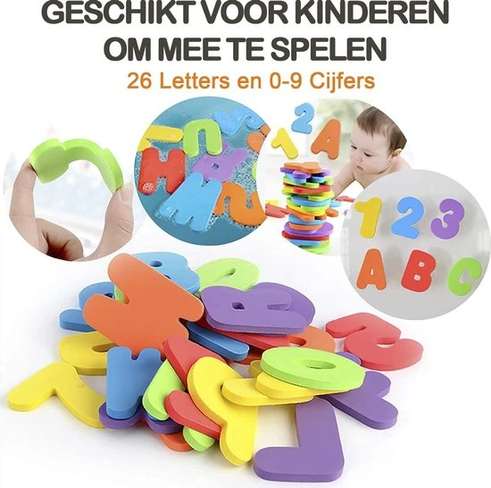 Alle letters van het alfabet én alle cijfers van 0 t/m 9 zijn inbegrepen in de set. De letters en cijfers kunnen aan de muur geplakt worden als ze nat zijn. Op die manier kan je kind zijn of haar eerste woorden leren schrijven. Door middel van de cijfers wordt ook met rekenen kennis gemaakt, waardoor de kinderen al vanaf vroege leeftijd beginnen met leren. De 6 verschillende toffe kleuren maken het geheel vrolijk en leuk om mee te spelen. Zo maak je in bad gaan leerzaam en leuk!