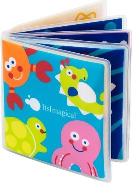 Zacht gevoerde waterdicht boek met vijf geïllustreerde pagina’s en een pieper op de middelste pagina.