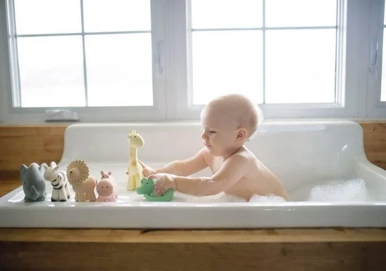 Dit badspeeltje, een schattige krokodil met belletje in natuurlijk latex is ideaal om mee te spelen en in te bijten. Het badspeelgoed heeft geen gaatje, waardoor bacteriën en schimmels geen kans hebben zich te nestelen. Het speeltje ziet er leuk uit, is zacht en flexibel en past perfect in kleine handjes.