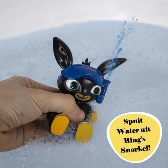 Het is één en al badplezier met deze opwindboot van Bing! Bingsters zullen dol zijn op badtijd met Bing terwijl hij water uit zijn snorkel spuit en in zijn boot door het water drijft. Wind de mast op en kijk hoe de propeller draait, zoefff… daar gaat Bing in zijn rode zwembroek, zwembandjes en bril. Inclusief een Bing waterspuiter die in de cabine van de boot kan worden geplaatst! Alle mechanische functies zijn opwindbaar, dus geen batterijen nodig. Leeftijdsindicatie: 12 maanden+.
