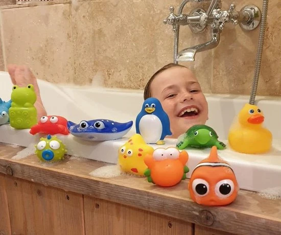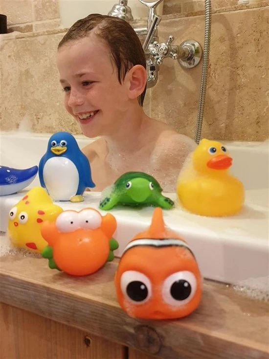 Sommige van de speeltjes hebben een functie om water te spuiten. Zo kan je kindje in de speeltjes knijpen, water spuiten en fantasierijk spelen. De verschillende vormen en texturen van het badspeelgoed stimuleert de zintuigen van je kleine. Daarnaast leert hij/zij verschillende dieren te herkennen tijdens het spetteren in bad.