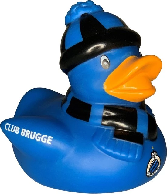 Tijd voor een warm bad met deze badeend van Club Brugge! De eend wordt geleverd met karakterische Brugse kleuren, een Brugse muts en sjaal. Op de voorkant van de sjaal staat het logo.