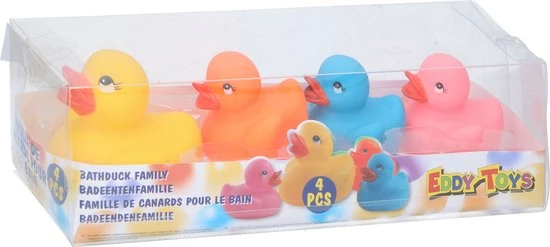 Eddy Toys – 4x Stuks Rubberen Badeendjes Familie Gekleurd – Bad Speeltjes