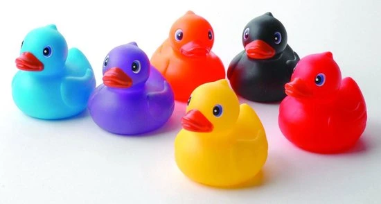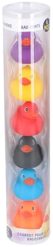 Kwik, Kwek en Kwak en hun 3 vriendjes willen graag bij jou in bad spelen. Deze vrolijke badeendjes van Eddy Toys zitten in een doorzichtige koker en zijn erg leuk om cadeau te geven. Het kleurrijke 6-tal staat decoratief op de badrand. De kids zullen zich er goed mee vermaken in het water.