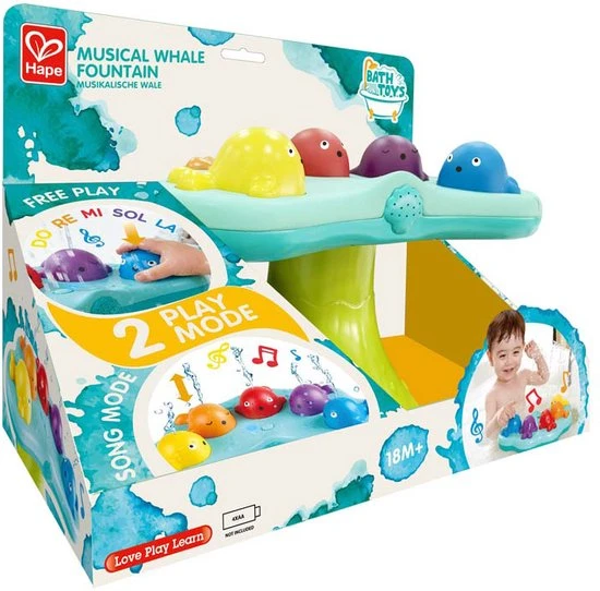 Maak badtijd magisch met deze prachtige muzikale walvisfontein! Kies tussen het kijken naar de fonteinen die dansen op muziek of speel elke walvis als de toetsen van een piano! Plak eenvoudig op de bodem van het bad met de bijgevoegde zuignap.