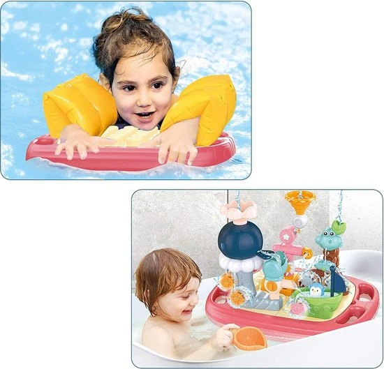 Met dit luxe drijvende waterpark, zorg je voor uren speelplezier in bad. Door ons badspeelgoed kunnen kinderen spelenderwijs kennis maken met de loop van het water, zwaartekracht en snelheid.