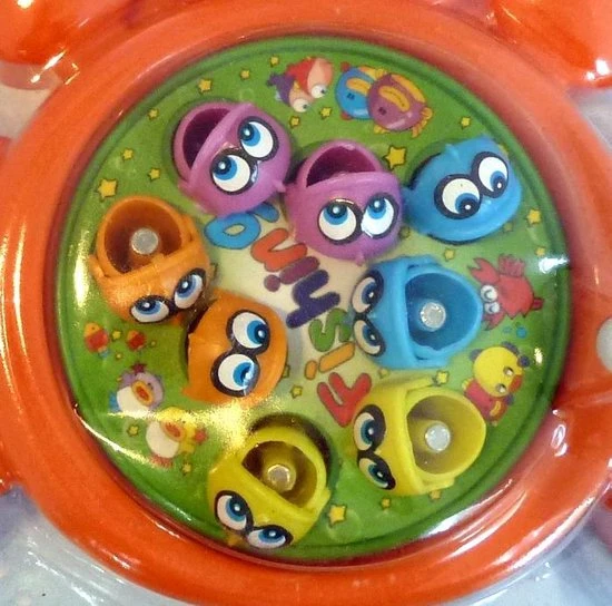 Populair spelletje met happende vissen. Wanneer je het plateau met de vissen opwindt, gaan ze zwemmen en met hun bekjes happen. Je kunt de vissen nu vangen met je magneethengel. Het hele spel is gemaakt in de vorm van een vrolijke krab. Veel visplezier alvast!