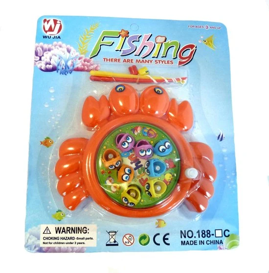 Inhoud: 1 x visspel in krabvorm, 8 x vissen, 2 x magnetische vishengels.