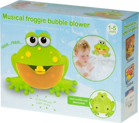 Voordat je begint te spelen, giet je zeepsop of iets dat schuimt en water in het speelgoed. Bevestig het speeltje vervolgens met behulp van zuignappen aan het bad. De kikker wordt geactiveerd door op een knop op de wang te drukken. De kikker speelt een vrolijke melodie terwijl de bubbels worden geproduceerd.