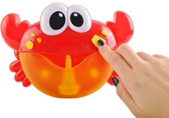 na het indrukken van de AAN / UIT-knop zal de krab bubbelschuim afgeven,