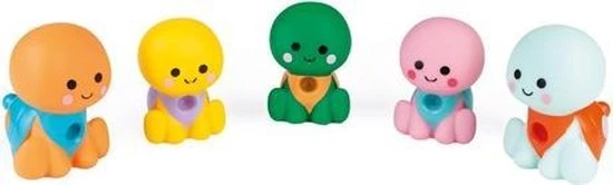 Voor kinderen van 10 maanden en ouder 5 schildpadden om eindeloos in elkaar te zetten en terug uit mekaar te halen! De 3 kleinste schildpadden zijn dol op plezier. Druk op hun buik en ze spuiten water! Ontwikkel de motoriek en behendigheid voor gegarandeerd uren speelplezier in bad.
