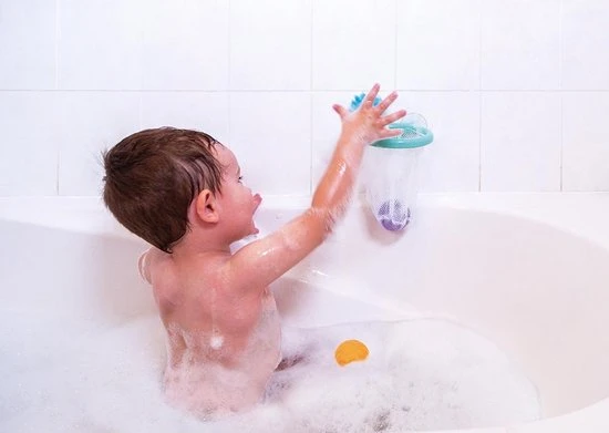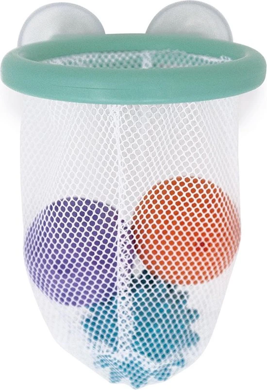 Basketmand voor het bad om op te hangen aan de faience dankzij de zuignappen. Vergezeld van 3 zintuiglijke ballen om de motoriek en de concentratie van het kind te ontwikkelen.