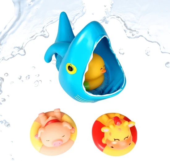De drie meegeleverde knijpdiertjes zuigen zich vol met water, als je er in knijpt spuiten ze water. Probeer de diertjes te vangen met de haai. De haaiengrijper heeft een groot handvat welke makkelijk door het water te bewegen is. Het speelgoed is gemaakt in felle kleuren om motorische en sensorische vaardigheden te verbeteren.