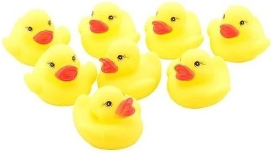 40x Badeendjes geel 6 cm. Vijf keer een set van 8 gele rubberen badeendjes met per stuk een formaat van ongeveer 6 x 6 x 4 cm. Leuk voor de kleine in bad, maar natuurlijk ook voor de verzamelaar!