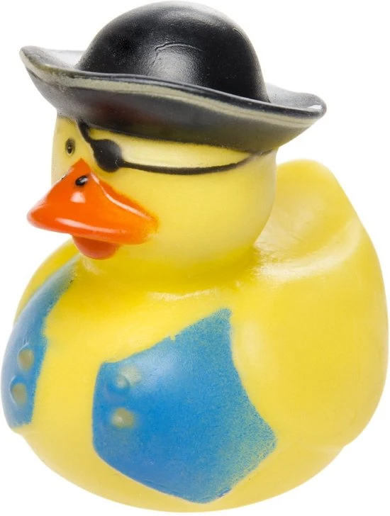 4x Badeendjes piraten badspeelgoed 5 cm. Met deze verschillend geklede badeendjes zal uw kindje zich heerlijk vermaken terwijl het in bad zit! Er zijn 4 verschillende types. Afmeting: 5 x 5 x 5 cm. Materiaal: zacht kunststof.