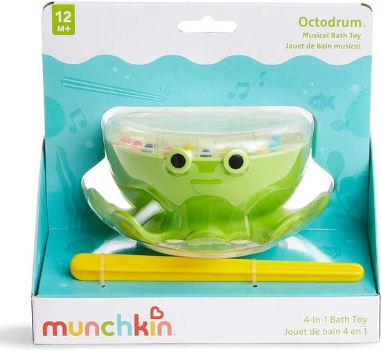 Deze Munchkin Octodrum zorgt voor uren speelplezier. Het is 3 in 1. Een babytrommel, tamboerijn én een doolhofspel.De trommel is in de vorm van een octopus welke blijft drijven op het water. Ook kan het door middel van zuignappen tegen het bad worden bevestigd.