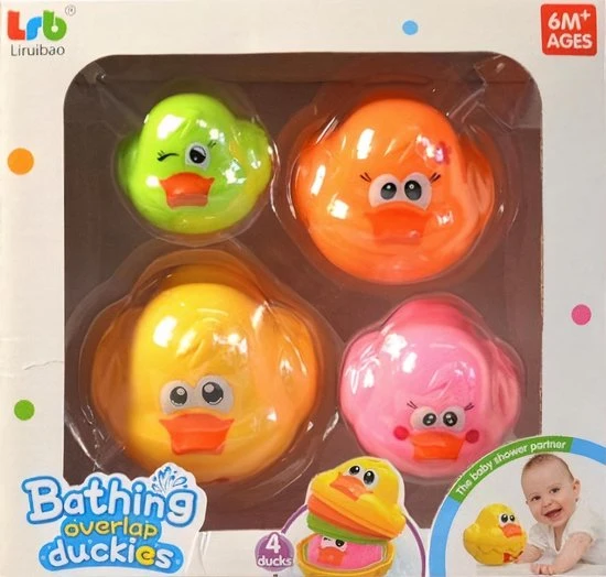 Badderen wordt nu nog leuker met deze vier badeenjes! Niet alleen dobberen ze heerlijk door het zeepsop, je kunt ze ook stapelen. Zo heb jij nog meer speelplezier in het bad!