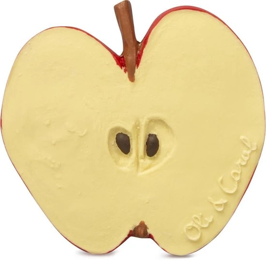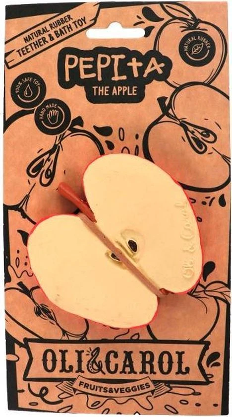 Haaa, zo leuk deze rubberen appel Pepita the Apple van het Spaanse merk Oli & Carol! Ideaal om mee in bad te nemen. Het bijtspeeltje is gemaakt van rubber dat afkomstig is van de Hevea bomen. Er zitten geen gaten in het ontwerp waardoor bacteriën en schimmels geen kans hebben zich te nestelen. De speeltjes zijn met de hand geverfd en helemaal eco-vriendelijk.