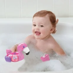 Plaats Chase (één geheel met zijn voertuig) boven op de toren en gebruik het kopje om de bovenkant met water te vullen. Chase glijdt met zijn voertuig van de baan om Chickaletta te redden. Het voertuig geeft licht zodra het in het water komt. Red Chickaletta en gebruik je fantasie om je eigen PAW Patrol-reddingsavonturen steeds weer opnieuw te spelen in bad.