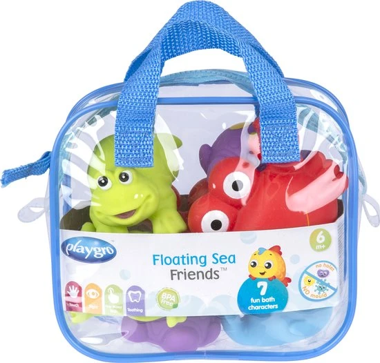 Wat zal je kleintje leuk spelen met de Floating Sea Friends Badspeeltjes van Playgro! Deze 7 zeevriendjes zullen je kleintje maximaal vermaken tijdens het baden. Ze hebben verschillende kleuren en zijn knijpbaar. De diertjes zijn perfect vast te houden door de kleine handjes van je kleintje en zijn volledig dicht, zodat er geen water in kan komen. Spelen met deze badspeeltjes is niet alleen leuk, het is ook nog eens goed voor de ontwikkeling van je kleintje. De felle kleuren stimuleren namelijk de fantasie en zintuigen van je kindje.