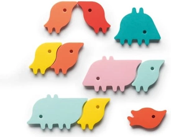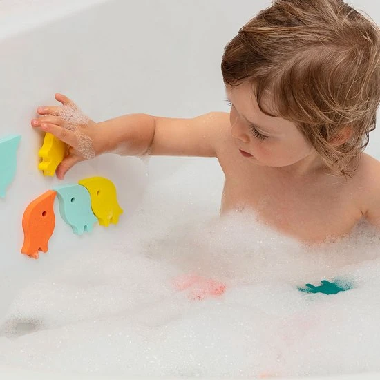 Is het een vogel of een visje? Een biggetje of een tapir? De kleine wezentjes in de Quutopia dierenparade hebben zich vermomd! Afhankelijk van hoe je het vasthoudt en hoe je ze op je bad- of douchewand kleeft, zie je er iets anders in. Gebruik ze allemal om een rups te maken! Stimuleer de verbeeldingskracht van jhe kinderen, en boost hun woordenschat, stemgeluid en klanken, en help hen hun motorische vaardigheden te ontwikkelen!