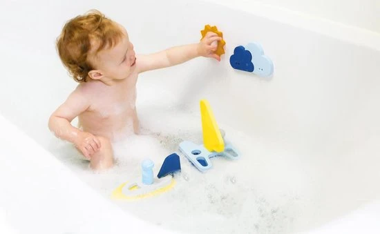 De verschillende vormpjes in elkaar steken helpt kinderen hun fijne motoriek te verbeteren en stimuleert hun creativiteit en fantasie. Alle figuurtjes zijn gemaakt van zacht schuim waardoor ze blijven drijven. De set bevat ook 2 vingerpopjes gemaakt van duurzaam plastic.