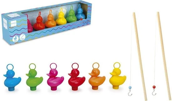Welk kind houdt er niet van de kermis? Met deze set van 6 leuke eendjes met 2 hengels breng je de kermis bij je thuis! Uren opvisplezier, binnen of buiten, in bad of op het droge. Leer de kinderen kleuren herkennen door ze een bepaalde kleur te laten vissen. Je kan met een waterproof stift het eendje onderaan punten geven om het spel compleet te maken.
