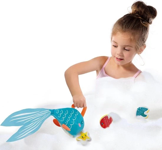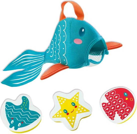 Deze vis heeft veel trek, maar waar is zijn eten? Help jij de vis om zijn voer te vinden? Ga samen in bad op zoek naar de drie foam snacks en laat ze in het buikje van de vis glijden. Mmm dat heeft heerlijk gesmaakt! De snack vis zorgt voor enorm veel plezier in bad.