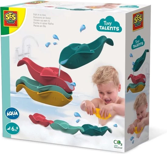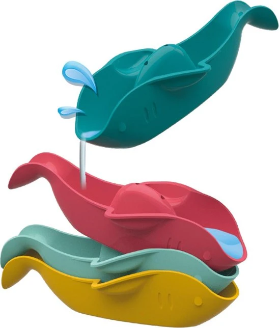 Met deze vier multifunctionele vissen heb je urenlang speelplezier in bad. Je kunt ze stapelen en achter elkaar schakelen, maar ook gebruiken als schepjes en als vergiet. Genoeg speelmogelijkheden!