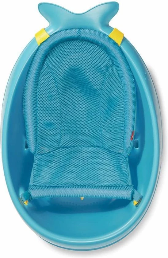 Het tweelaags gaas met comfortabele rand beschermt het hele lichaam van de baby. De lus kan worden aangepast tot zacht zitje om de baby op een comfortabele manier rechtop te leren zitten. Neem de lus weg wanneer de baby zelfstandig rechtop kan zitten en was de baby in alle comfort in het ruime bad.
