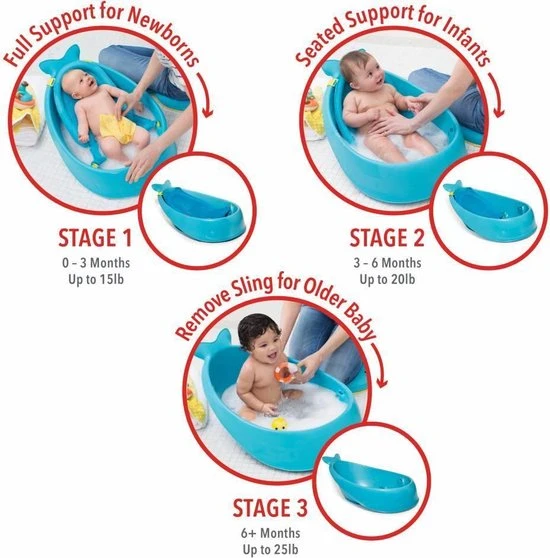 Ons veelzijdige badje groeit in drie fasen mee met de baby; je hebt geen ander badje meer nodig!