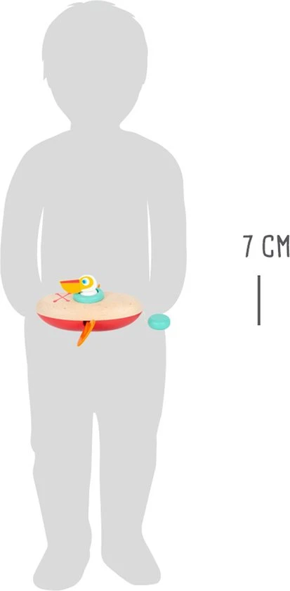 Deze schattige pelikaan in zijn houten en plastic kano zorgen voor enorm badplezier als hij helemaal alleen door het water vaart. Door het praktische opwindmechanisme kunnen beide peddels aan de zijkant van de kano draaien. Met dit waterspeelgoed is er geen limiet aan het plezier dat je kunt hebben in bad, in het kinderzwembad of in het grote zwembad! Voor een langere levensduur van het product, haal het uit het water en laat het na elk gebruik goed drogen. Waterspeelgoed van hout is het duurzame alternatief voor badspeelgoed voor plastic en rubberen speelgoeddieren! Niets meer staat het rollenspelplezier op volle zee in de weg. Al spelend leren de kleintjes het oorzaak-en-gevolg principe van het opwindmechanisme. Klein en handig, dit schattige kleine waterbeestje past gemakkelijk in elke zwemtas!