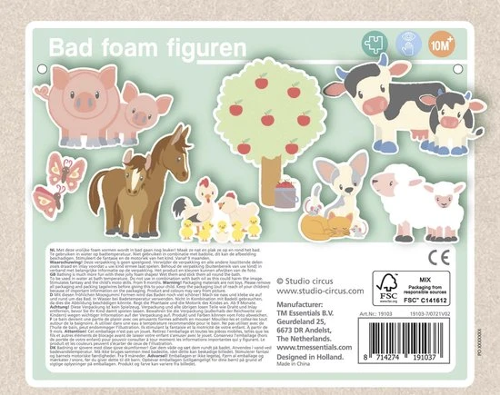 Lekker in bad spelen wordt nog leuker met de vriendjes van Studio Circus. Deze foamfiguren blijven plakken op de badrand of tegelwand en drijven in het water. Na het spelen gemakkelijk op te bergen in het netje dat met de zuignappen aan een glad oppervlak kan worden vastgemaakt.