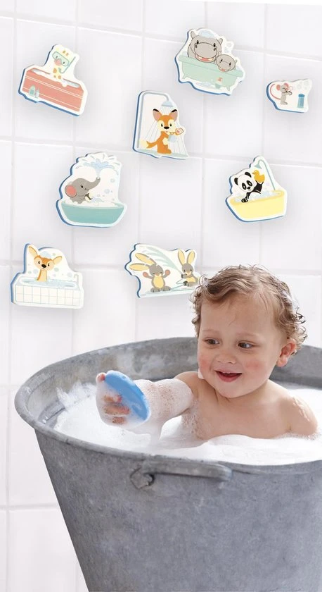 In bad spelen wordt nog leuker met deze boerderijvriendjes van Studio Circus. De boerderij foamfiguren blijven plakken op de badrand of tegelwand en drijven in het water. Na het spelen gemakkelijk op te bergen in het netje dat met de zuignappen aan een glad oppervlak kan worden vastgemaakt.