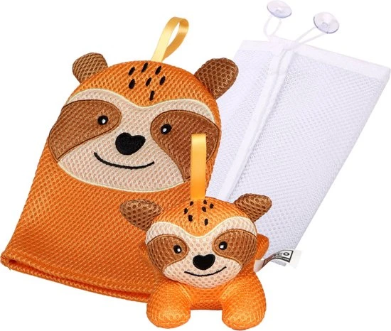 Het washandje isniet alleen ideaal voor in bad, maar bijvoorbeeld ook voor het schoonmaken van vieze handjes. Daarnaast vermaakt je kleine zich met het bijpassende badspeeltje! Wanneer jullie uitgebadderd zijn, berg je beiden weer op in de organizer. Deze is gemakkelijk op de wand te bevestigen met de zuignappen.