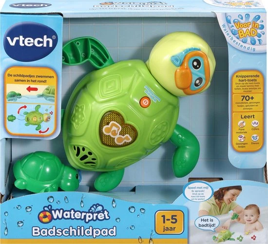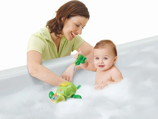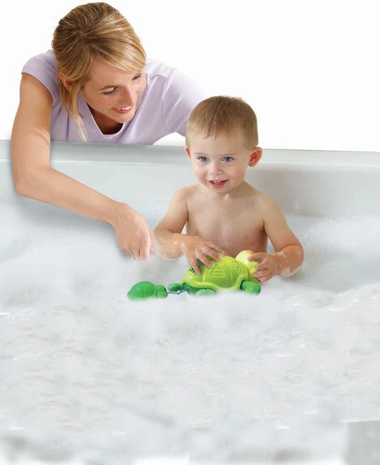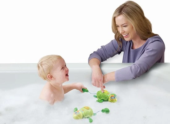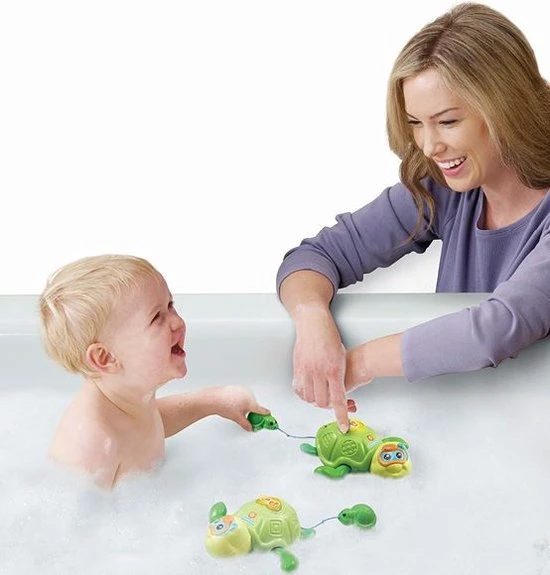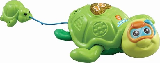 - Trek aan de babyschildpad om de flippers op te winden en zie mamaschildpad samen met haar baby rondjes zwemmen