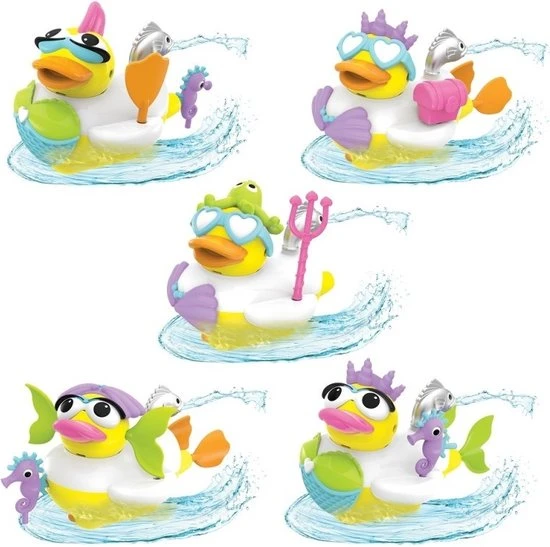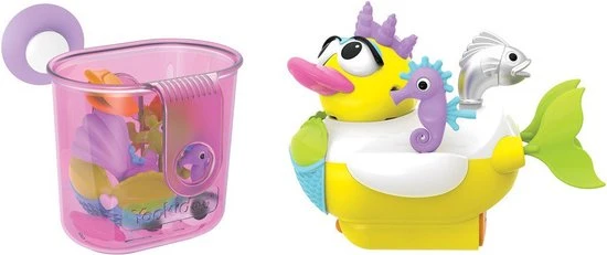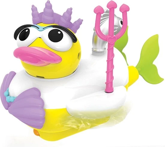 Je kindje zal urenlang badplezier hebben met deze leuke zeemeermin-badeend! Je kunt de eend zelf een zeemeermin uiterlijk geven met de 15 verschillende thema-accessoires. De eend wordt aangedreven door batterijen en zwemt rond in het water. Met de meegeleverde speeltjeshouder kun je de accessoires handig bij elkaar houden.
